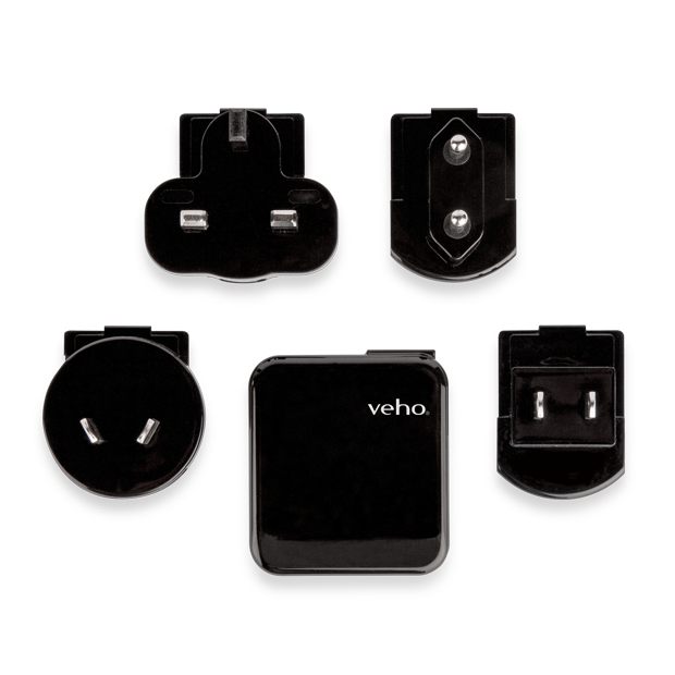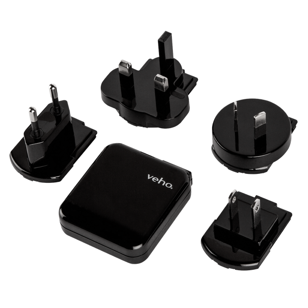 Wherever you are in the world the Veho VAA-005 multi regional USB adapter allows you to charge any USB device. The interchangeable AC sockets click quickly and easily in and out of position so that you are able to switch between regional power supplies with ease. The 5V 1000mA output means the travel adapter is compatible with charging your Veho MUVI, Speaker, iPhone, iPod, MP3 or any other USB charged device.